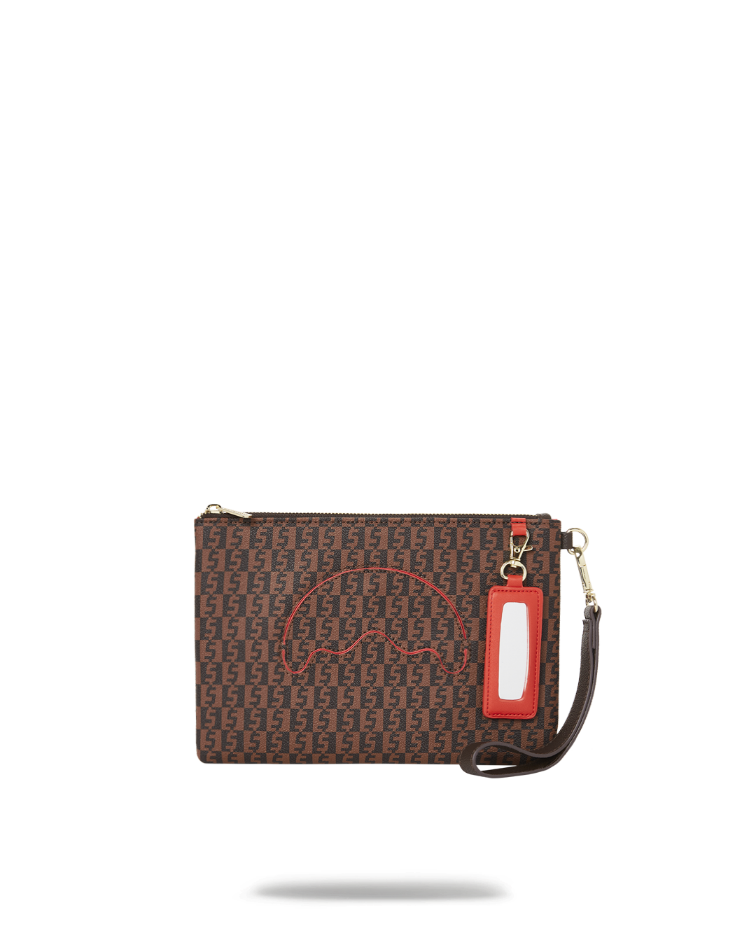 Pouch with removable wristlet strap. Handle on front panel. Zip Closure