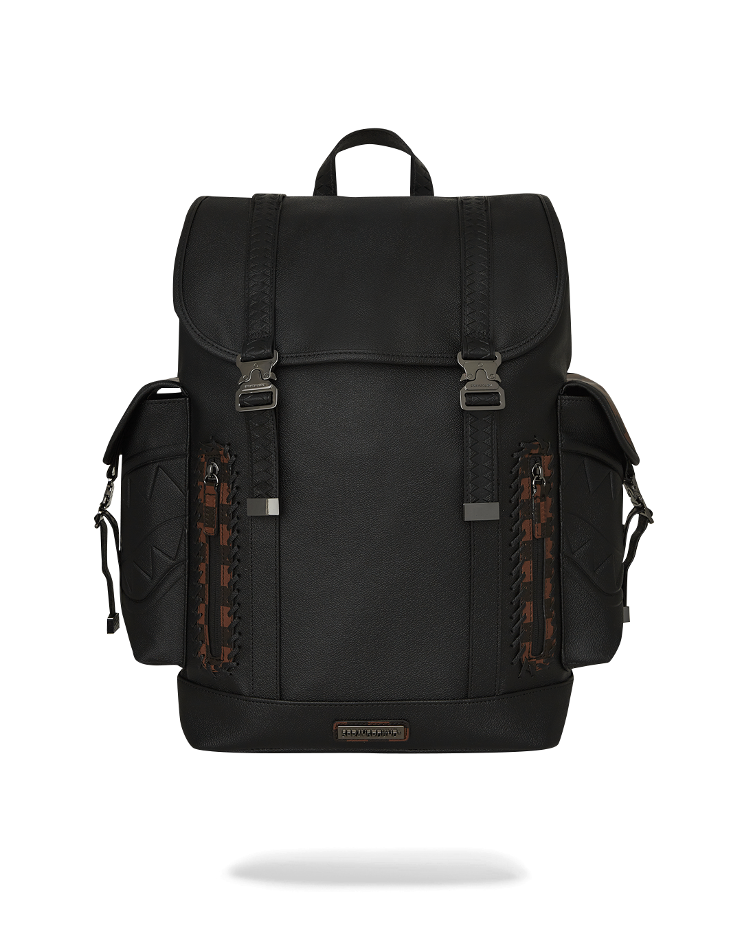 Dimensions: 18" x 6" x 11.5" • Top Flap opening w/ adjustable metal enamel buckles and drawstring closure • Two side cargo pockets with metal enamel buckles and drawstring closures • Zippered Stash pocket • Ergonomic mesh back padding • Adjustable Straps for custom sizing • Embossed logo on back strap