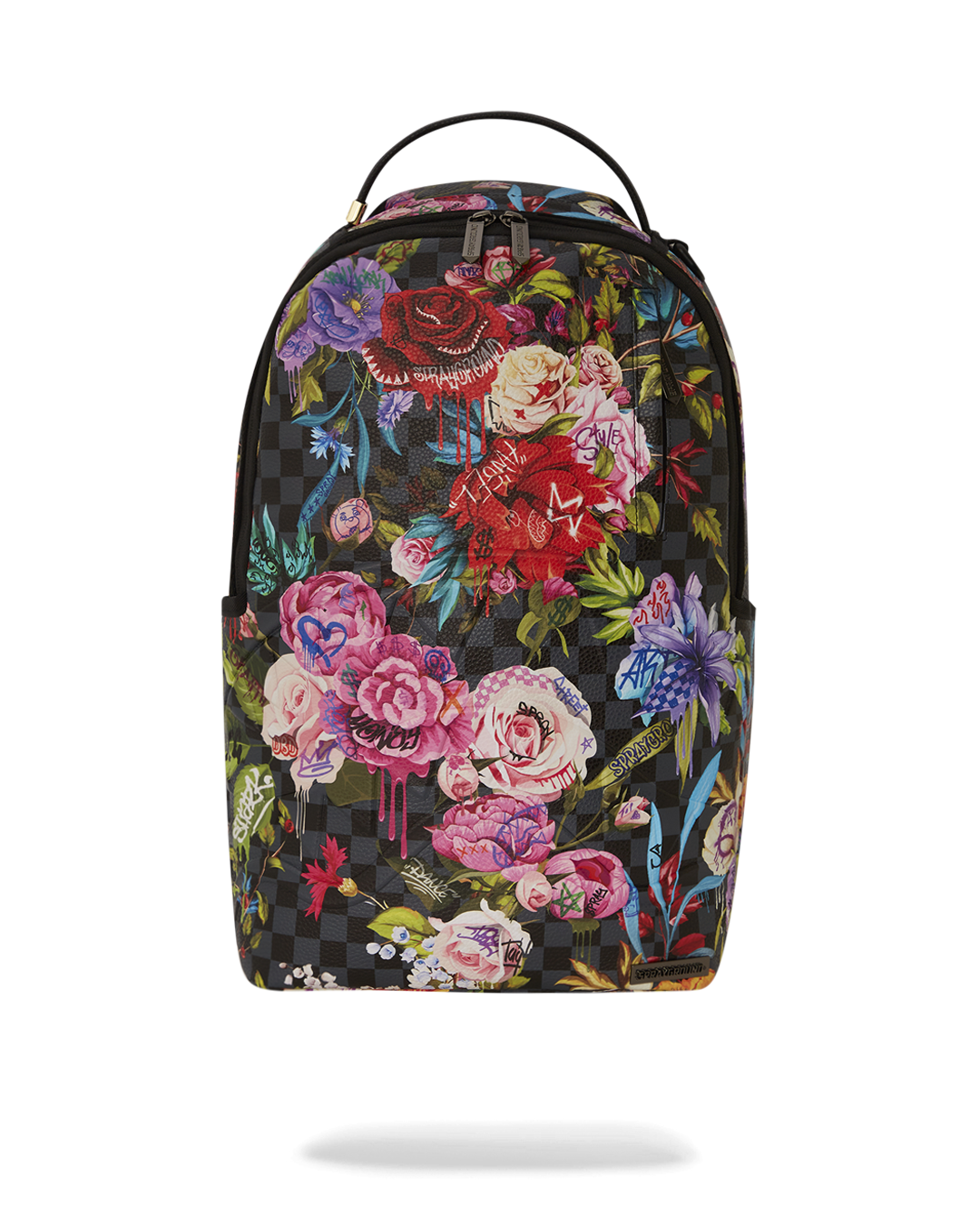 Dimensions: 18" x 6" x 11.5" • Front zipper pocket • Side pockets • Zippered Stash pocket • Separate velour sunglass compartment • Ergonomic mesh back padding • Adjustable Straps for custom sizing • Gold zippers with metal hardware • Metal "Sprayground Authentic" badge • Slide through back sleeve connects to carry-on luggage to free your hands