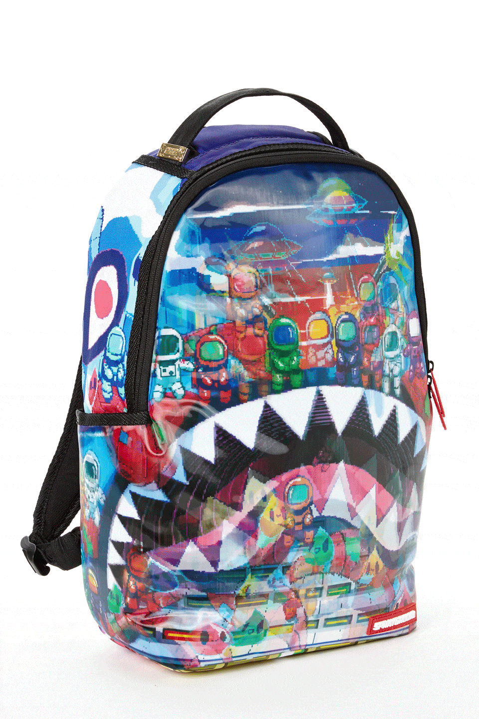 ExteriorDimensions: 18" x 6" x 11.5" ∙ Front zipper pocket ∙ Side pockets ∙ Zippered Stash pocket ∙ Ergonomic mesh back padding ∙ Adjustable Straps for custom sizing ∙ Nylon Zippers with Metal Hardware ∙ Metal "Sprayground Authentic" badge ∙ Slide through back sleeve connects to Carry on luggage to free your hands