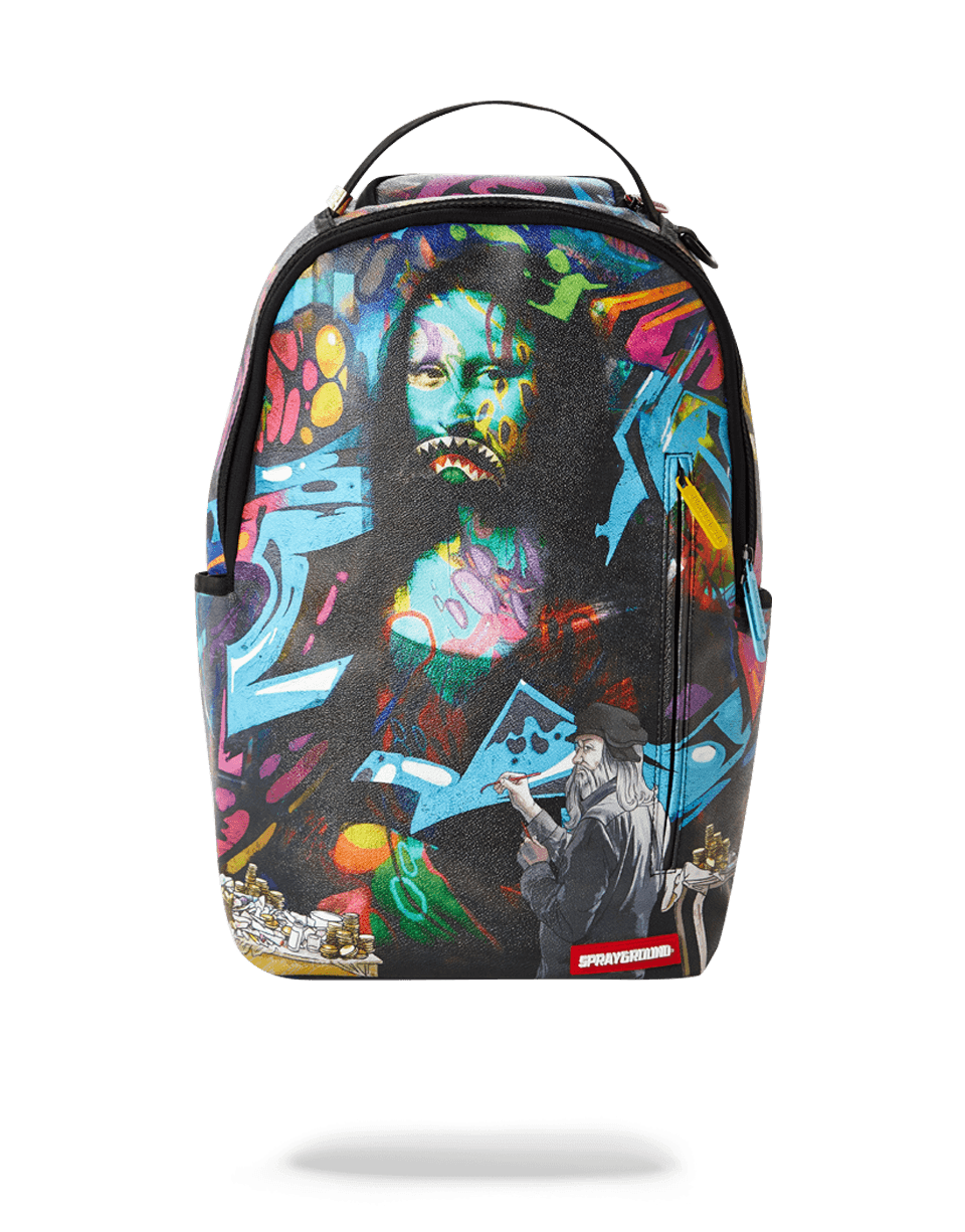 ExteriorDimensions: 18" x 6" x 11.5" • Front zipper pocket • Side pockets • Zippered Stash pocket • Ergonomic mesh back padding • Adjustable Straps for custom sizing • Nylon Zippers with Metal Hardware • Metal "Sprayground Authentic" badge • Slide through back sleeve connects to Carry on luggage to free your hands