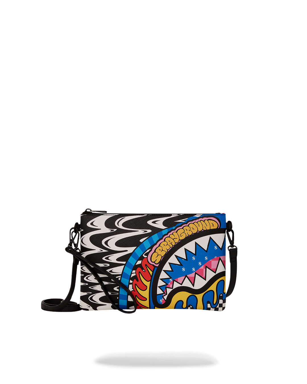 Pouch with removable wristlet strap. Handle on front panel. Zip Closure