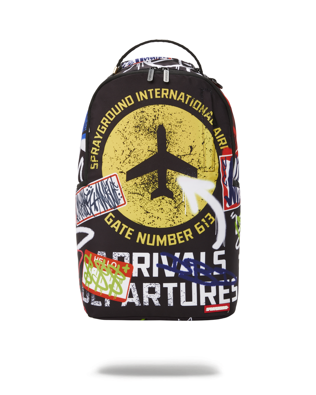 Dimensions: 18" x 6" x 11.5" • Front zipper pocket • Side pockets • Zippered Stash pocket • Separate velour sunglass compartment • Ergonomic mesh back padding • Adjustable Straps for custom sizing • Green zippers with metal hardware • Metal "Sprayground Authentic" badge • Slide through back sleeve connects to carry on luggage to free your hands