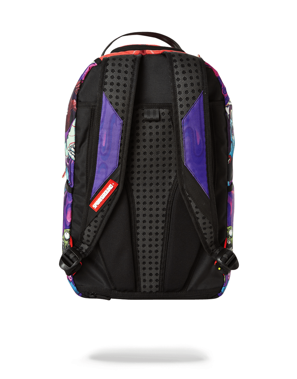 ExteriorDimensions: 18" x 6" x 11.5" ∙ Front zipper pocket∙ Side pockets ∙ Zippered Stash pocket ∙ Ergonomic mesh back padding ∙ Adjustable Straps for custom sizing ∙ Nylon Zippers with Metal Hardware ∙ Metal "Sprayground Authentic" badge ∙ Slide through back sleeve connects to Carry on luggage to free your hands