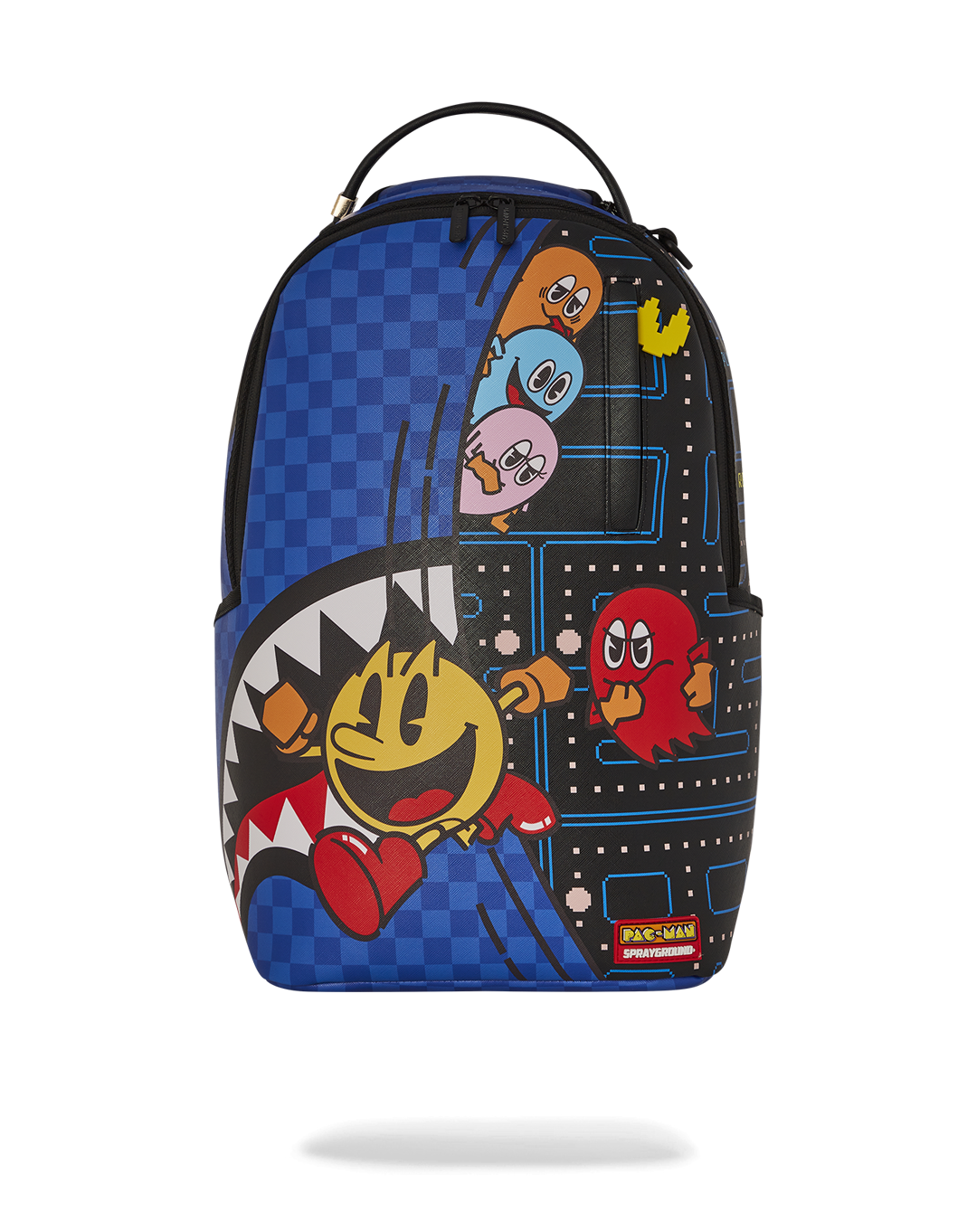 Dimensions: 18" x 6" x 11.5" • Front zipper pocket • Side pockets • Zippered Stash pocket • Separate velour sunglass compartment • Ergonomic mesh back padding • Adjustable Straps for custom sizing • Gold zippers with metal hardware • Metal "Sprayground Authentic" badge • Slide through back sleeve connects to carry-on luggage to free your hands