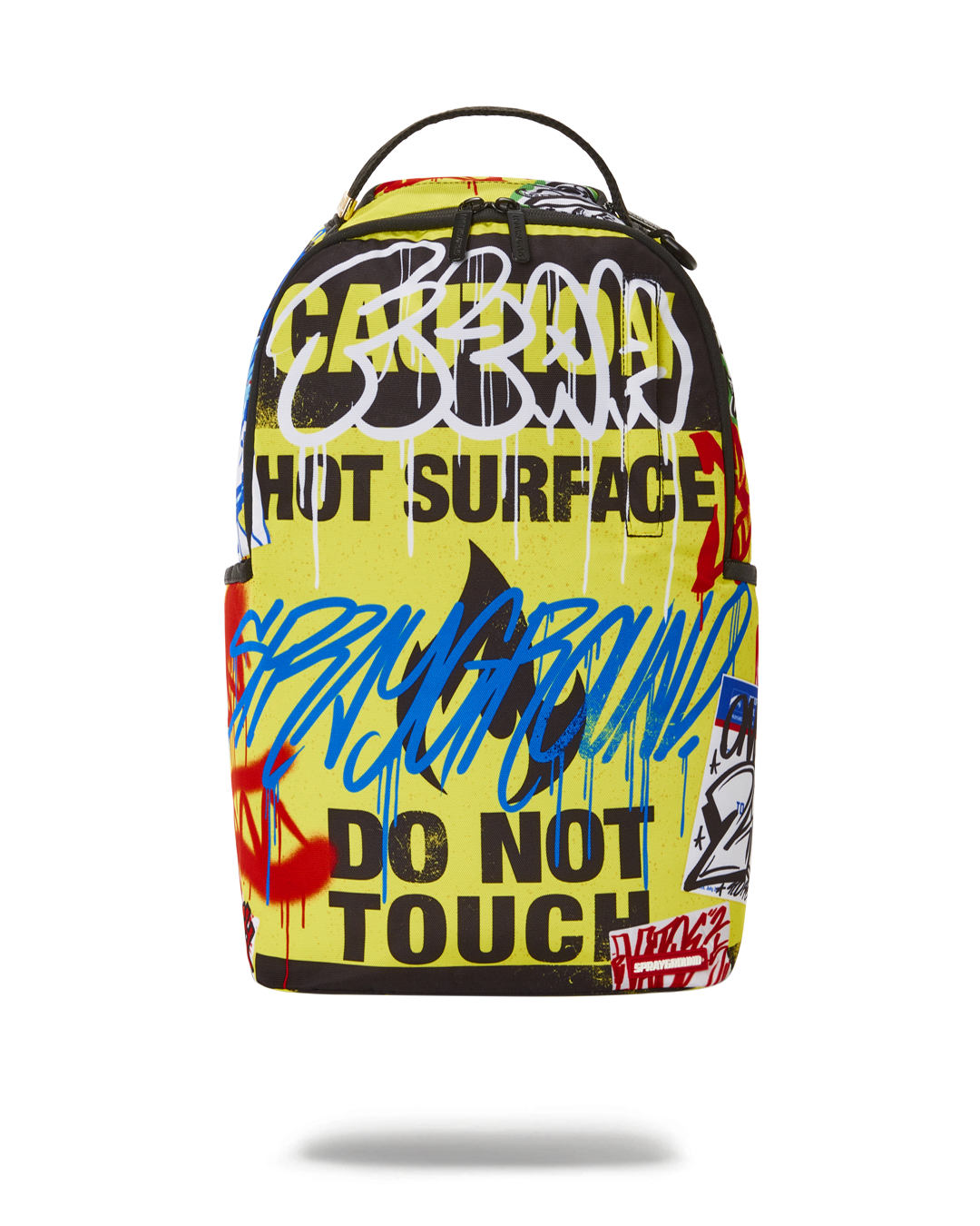 Dimensions: 18" x 6" x 11.5" • Front zipper pocket • Side pockets • Zippered Stash pocket • Separate velour sunglass compartment • Ergonomic mesh back padding • Adjustable Straps for custom sizing • Green zippers with metal hardware • Metal "Sprayground Authentic" badge • Slide through back sleeve connects to carry on luggage to free your hands