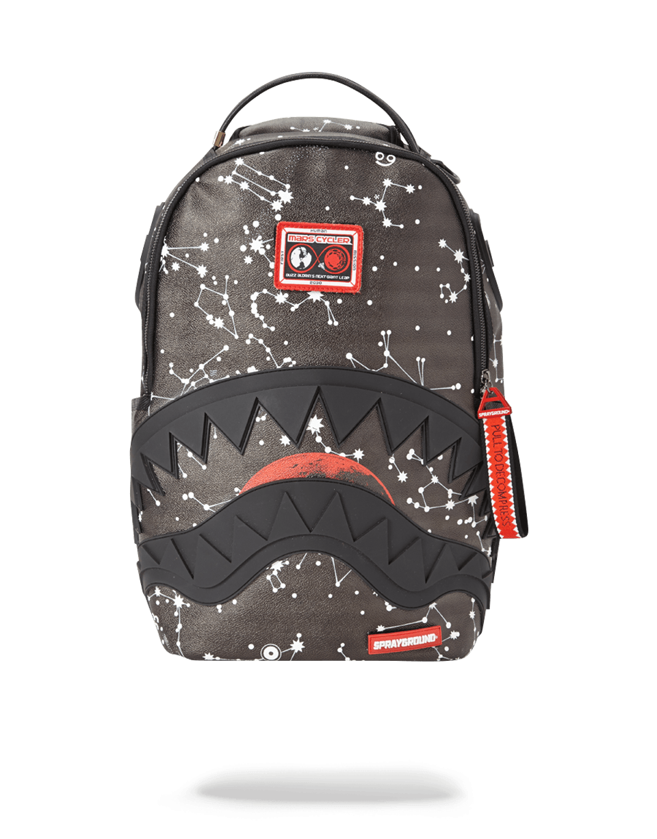 ExteriorDimensions: 18" x 6" x 11.5" ∙ Front zipper pocket ∙ Side pockets ∙ Zippered Stash pocket ∙ Ergonomic mesh back padding ∙ Adjustable Straps for custom sizing ∙ Nylon Zippers with Metal Hardware ∙ Metal "Sprayground Authentic" badge ∙ Slide through back sleeve connects to Carry on luggage to free your hands