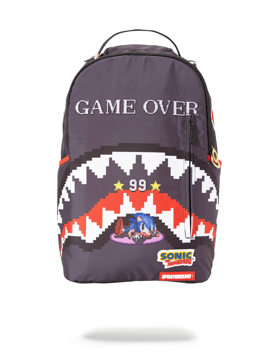 ExteriorDimensions: 18" x 6" x 11.5" ∙ Front zipper pocket ∙ Side pockets ∙ Zippered Stash pocket ∙ Ergonomic mesh back padding ∙ Adjustable Straps for custom sizing ∙ Nylon Zippers with Metal Hardware ∙ Metal "Sprayground Authentic" badge ∙ Slide through back sleeve connects to Carry on luggage to free your hands